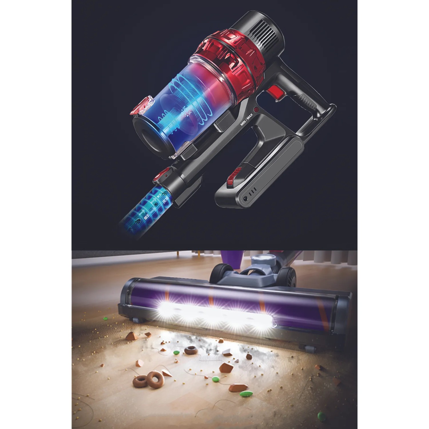 Moteur puissant lithium-ion 22,2 V avec une puissance d'aspiration élevée.