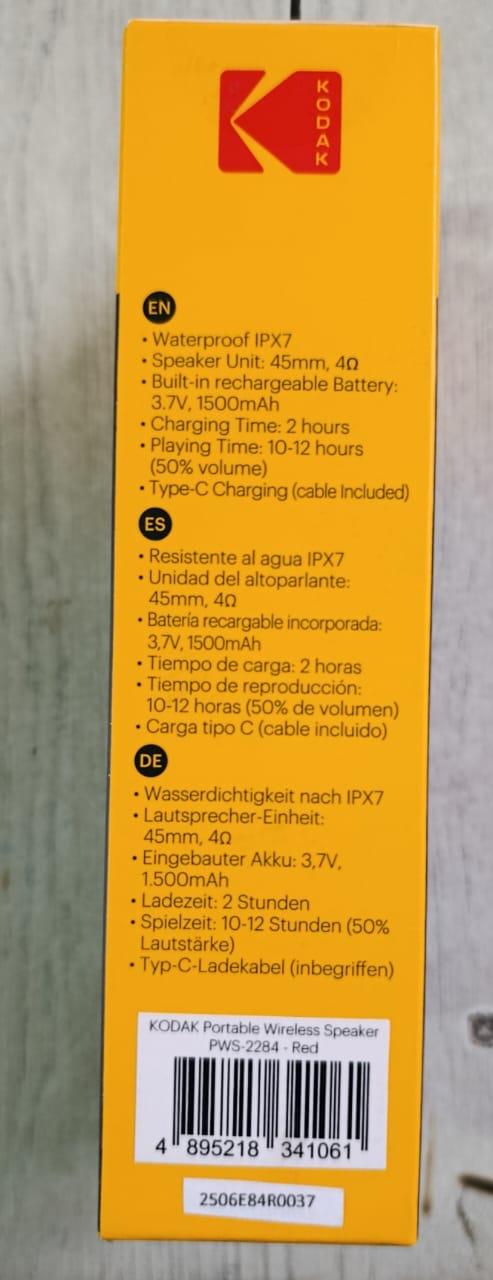 Nom : HAUT PARLEUR KODAK SANS FIL IPX7 6W - NOIR (PWS2284)