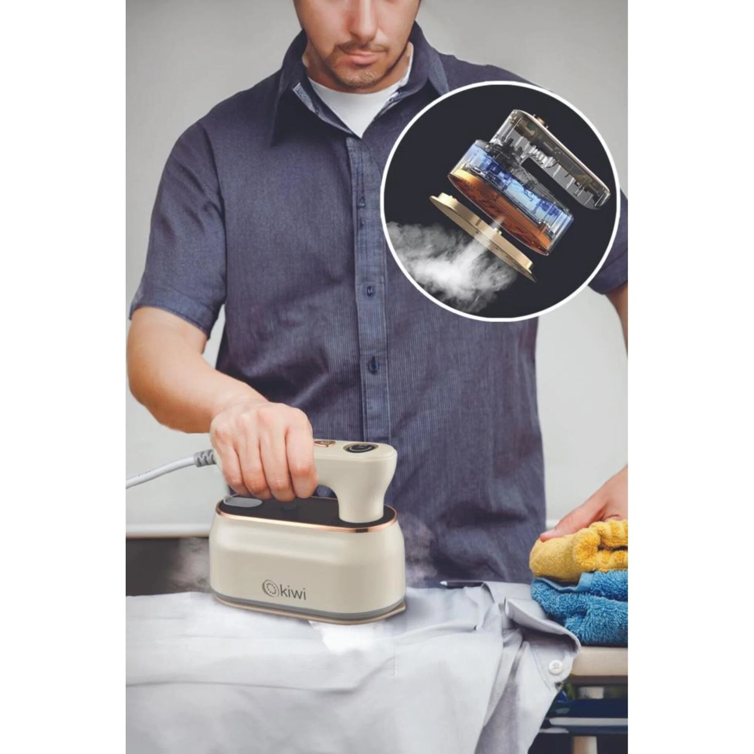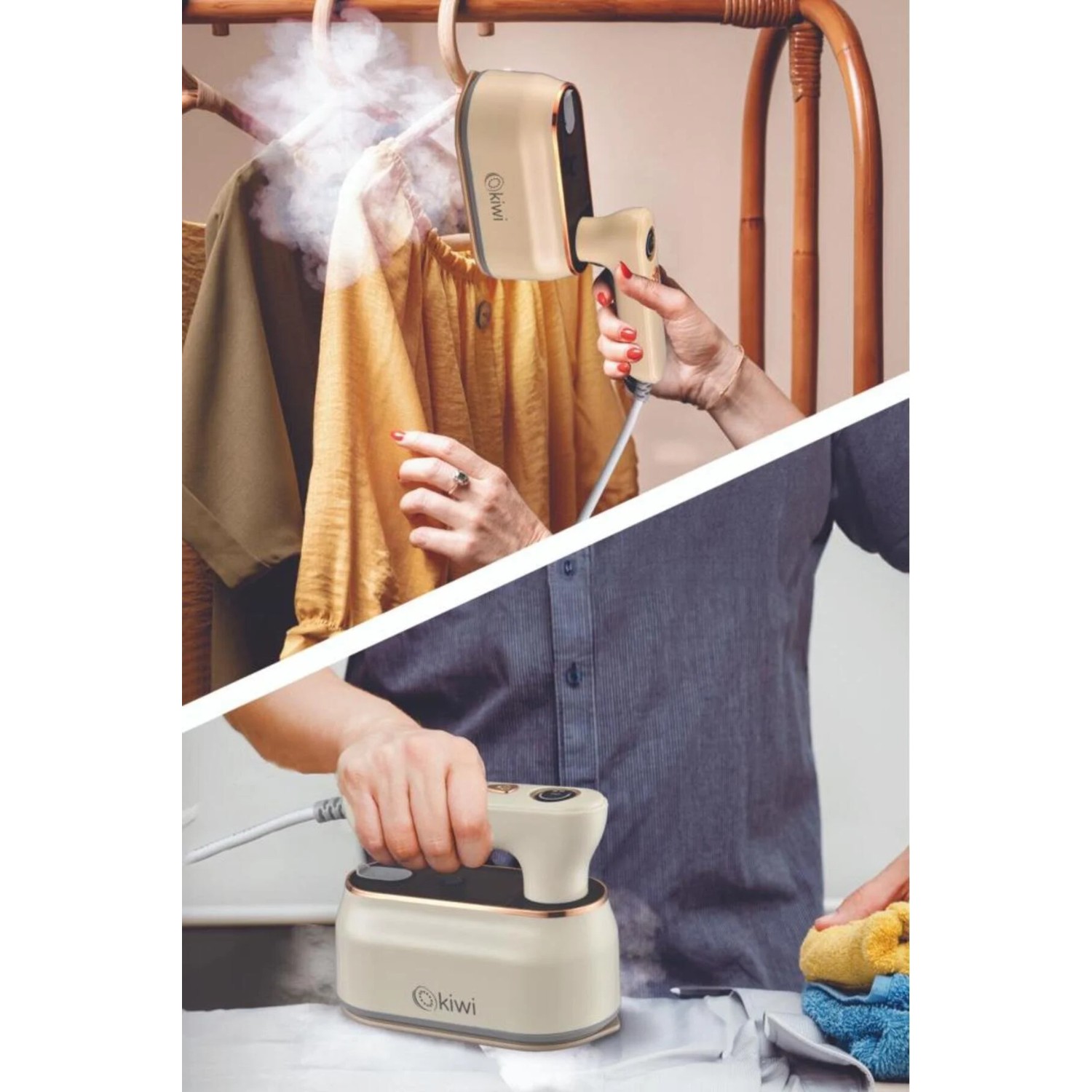 Marque Kiwi 2 en 1 défroisseur fer à vapeur et fer vertical anti-rides crème portable KSI-646